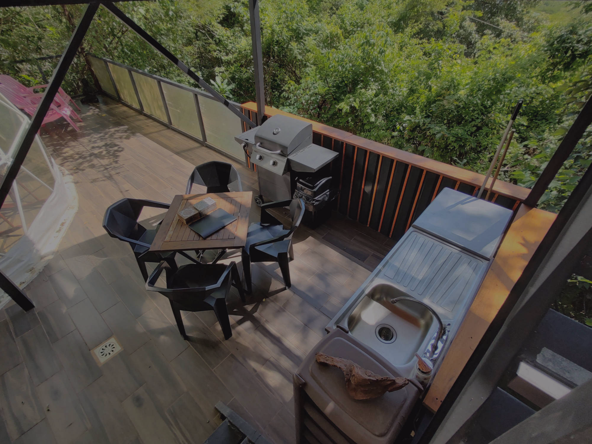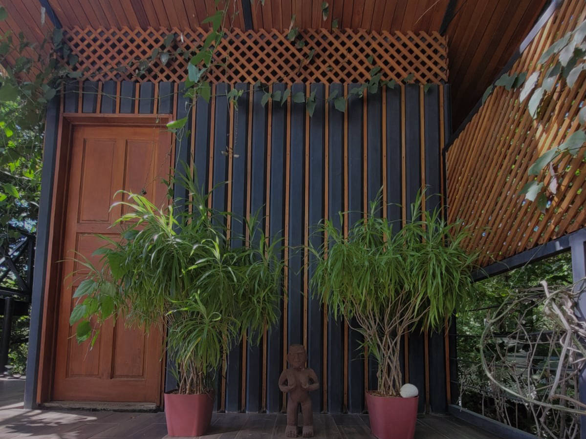 Fully equipped kitchen provided with a outdoor barbecue, rain shower bathroom with hot water, air-conditioned room area with hammocks to relax, tiny pool under the trees, terrace with panoramic view.